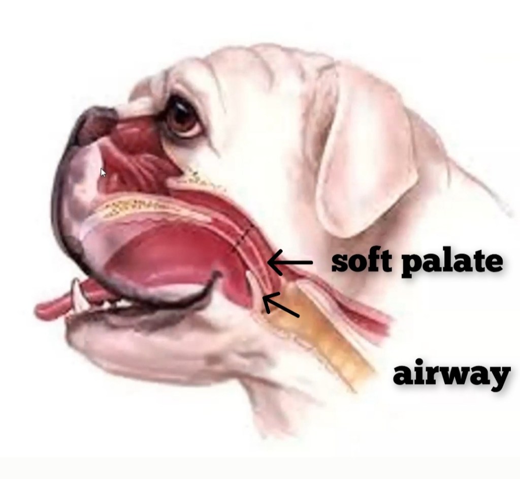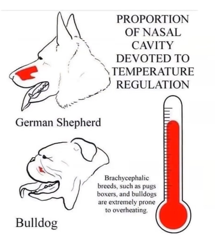 This is why bulldogs are so prone to overheating and why a cage dryer should never be used on a brachycephalic dog.